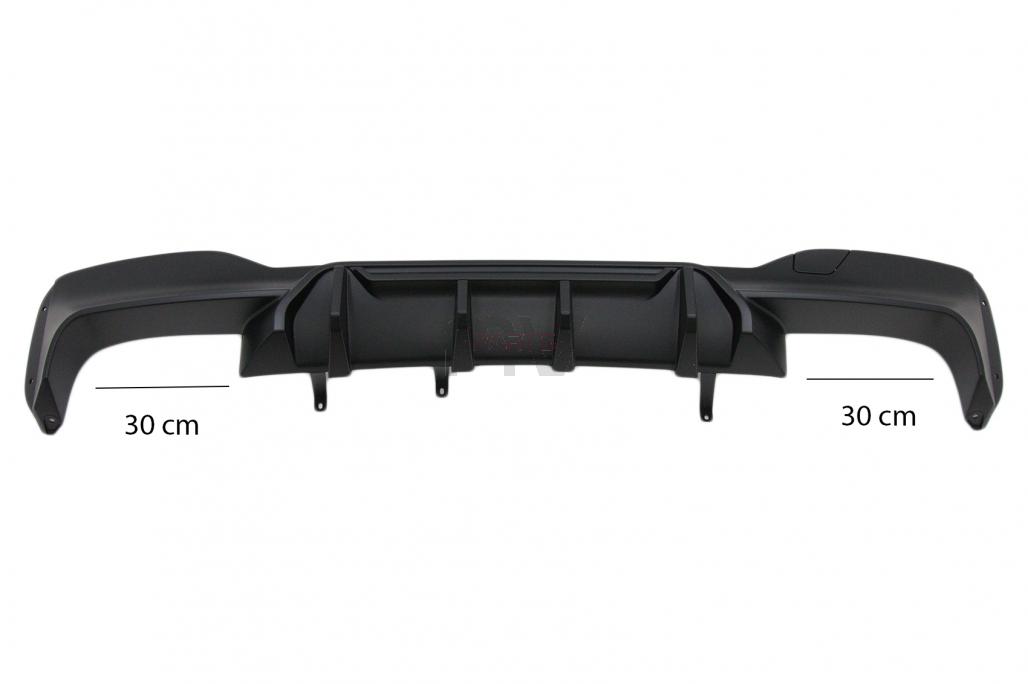 Para-choque da frente com grelhas inferiores; Embaladeiras; Para-choque traseiro com difusor
