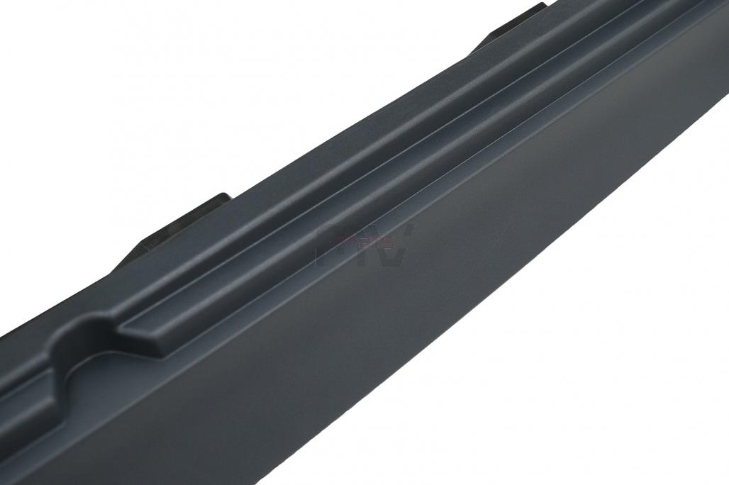 Para-choques frente com Grelhas inferiores; Embaladeiras; Para-choques traseiro com Difusor