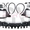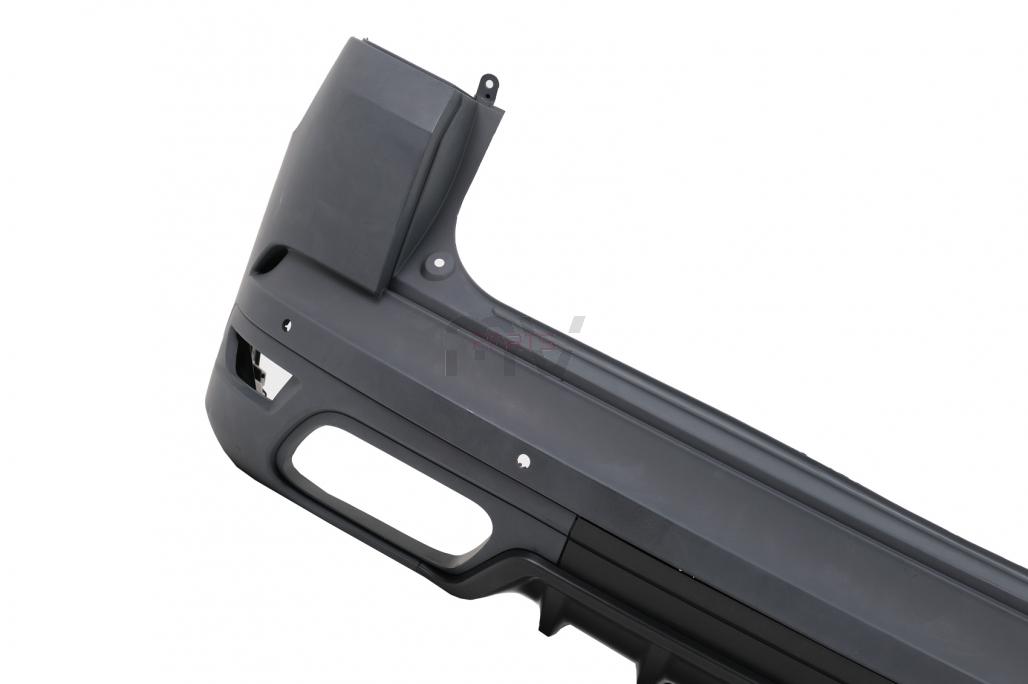 Para-choques frontal com Grelhas inferiores; Grelha Superior; Faróis, Guarda-Lamas; Aros de Rodas; Embaladeiras; Para-choques Traseiro com Difusor e Ponteiras e Farolins.