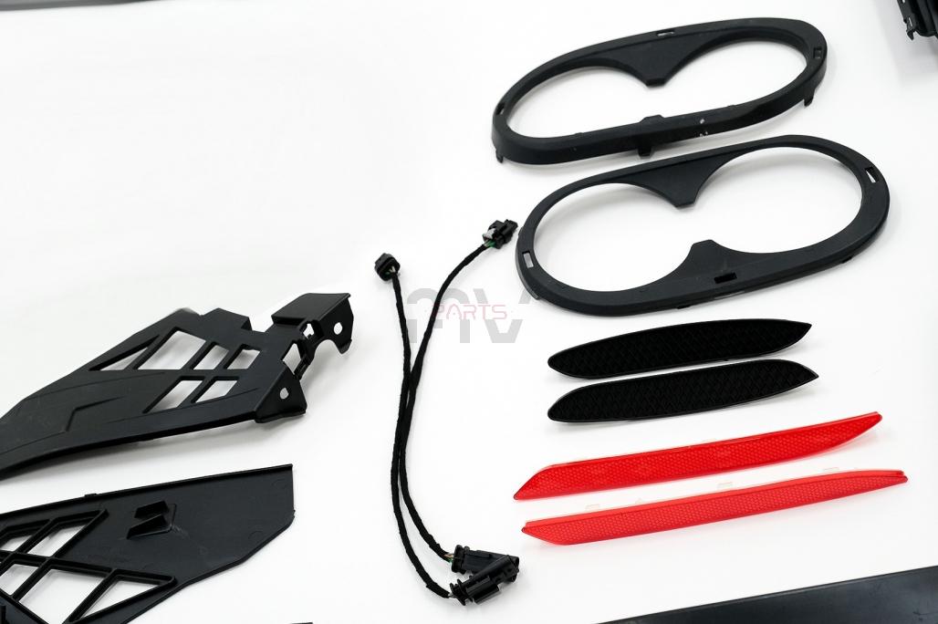 Para-choque da frente com Grelhas inferiores; Grelha central Look GTR; Embaladeiras; Aileron; Para-choque trás com Difusor de saídas duplas; Ponteiras Duplas Cromadas (em aço inoxidável 304 polido de alta qualidade) e Aileron