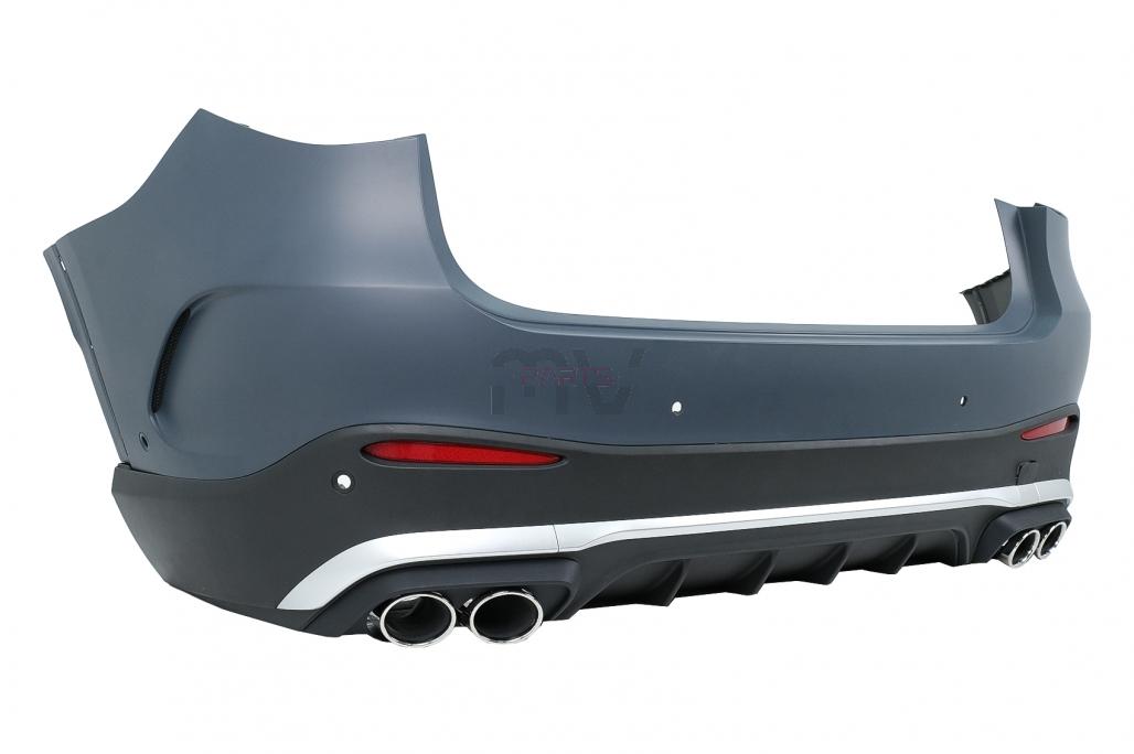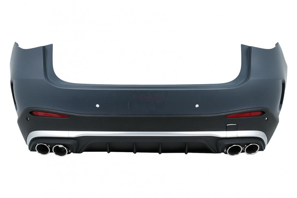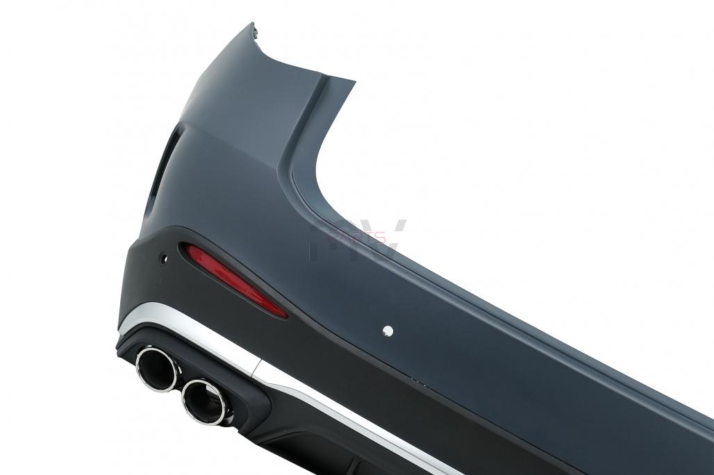 Para-choques frontal com Grelhas inferiores e superior; Cavas; Para-choques traseiro com difusor e ponteiras