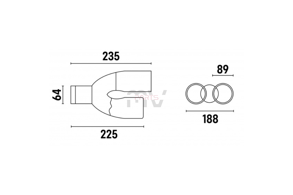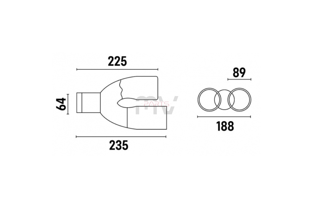 Diâmetro de saída 89 mm, total 188 mm